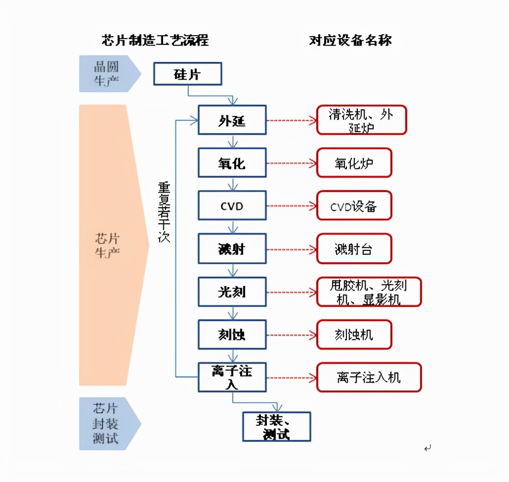 过程需要经历:滚磨→激光标识→切片→倒角→磨片→腐蚀→背损伤→边缘镜面抛光→预热清洗→抵抗稳定,退火→背封→粘片→抛光→检查前清洗→外观检查→金属清洗→擦片→激光检查→包装(里面充满氮气)